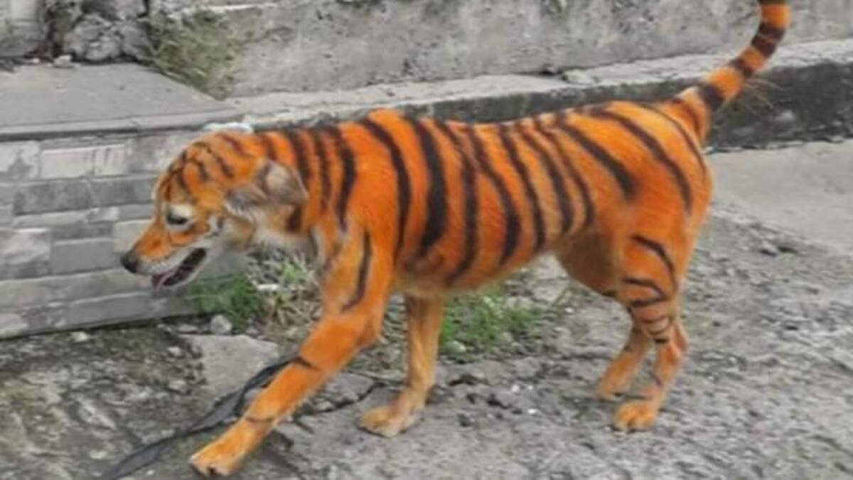 Parecía un tigre pequeño pero no. Era un perro callejero pintado de color naranja y con rayas negras, como si se tratara del felino, han causado indignación en las redes sociales por considerarse como un nuevo caso de maltrato animal.