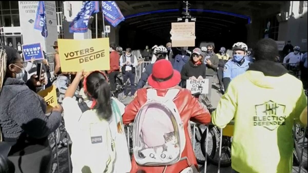 Decenas de simpatizantes de Joe Biden y Donald Trump, se manifestaron en Filadelfia, para exigir el escrutinio de todos los votos. El recuento se espera que se extienda hasta el 6 de noviembre.