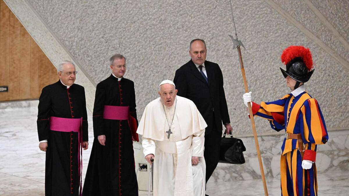 El papa, de 87 años, llegó al Aula Pablo VI andando por su propia cuenta y no con la silla de ruedas que suele usar por sus problemas de rodilla, para participar en este encuentro intergeneracional impulsado por la Fundación 'Età Grande'.