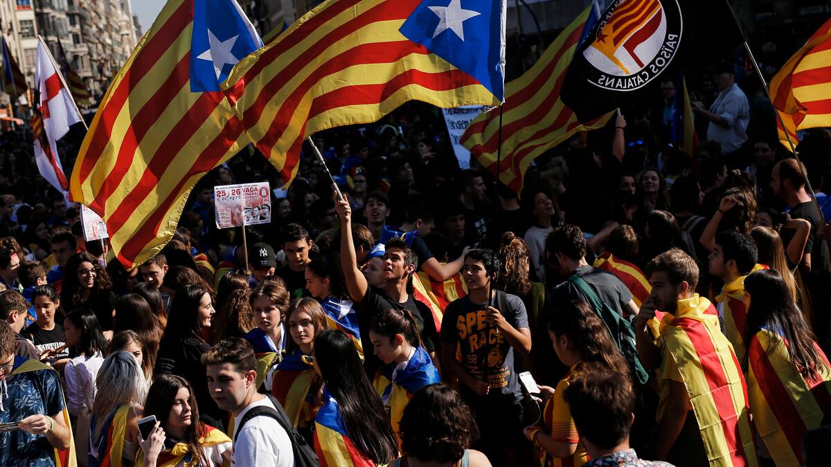 Miles de estudiantes se concentraron este jueves en Barcelona en apoyo a una proclamación de independencia de Cataluña y rechazo a la posible intervención de la autonomía regional por parte del gobierno central español.