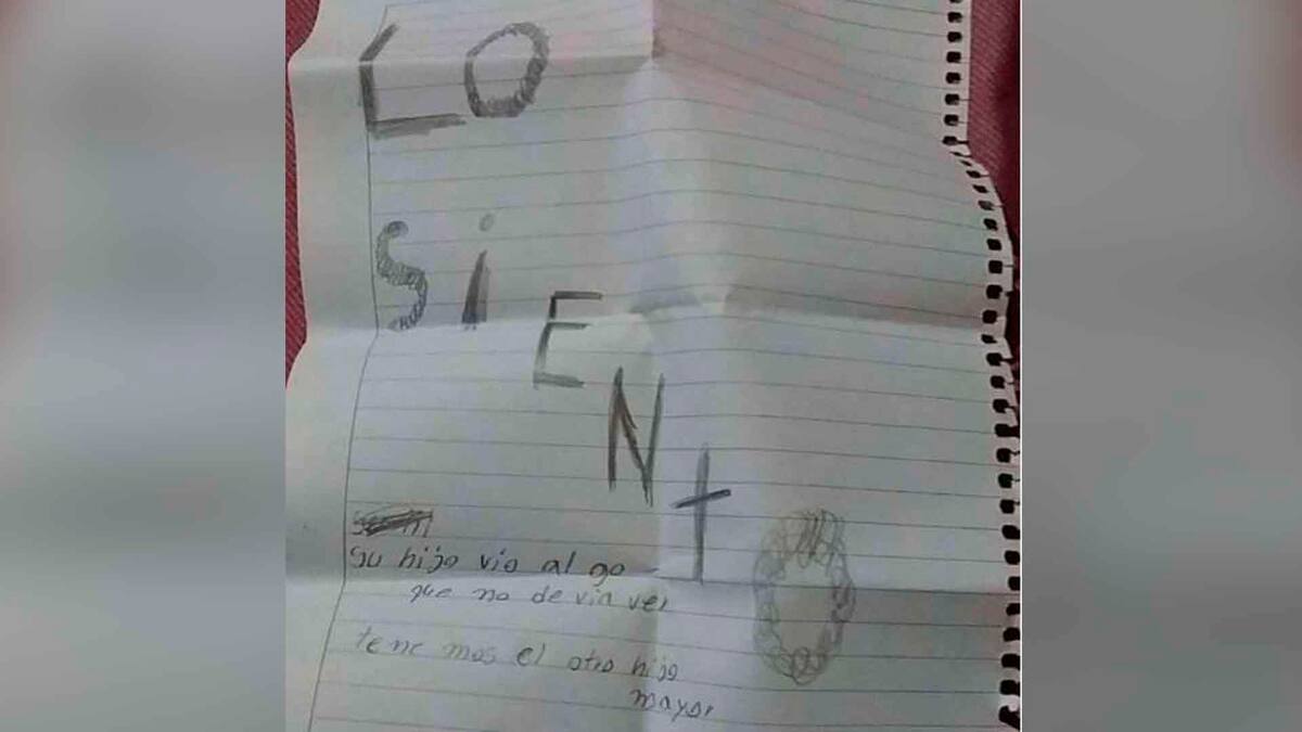 Asimismo, en el baño de la vivienda halló un escalofriante mensaje que la dejó paralizada. 'Lo siento, su hijo vio algo que no debía ver. Tenemos al otro hijo mayor', decía la carta.