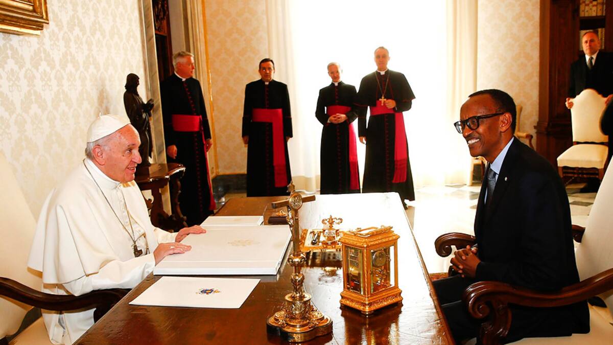 Durante las 'cordiales' conversaciones entre el papa y Kagame se recordaron 'las buenas relaciones existentes' entre la Santa Sede y Ruanda y se apreció especialmente 'la senda de recuperación y estabilización social, política y económica del país'.