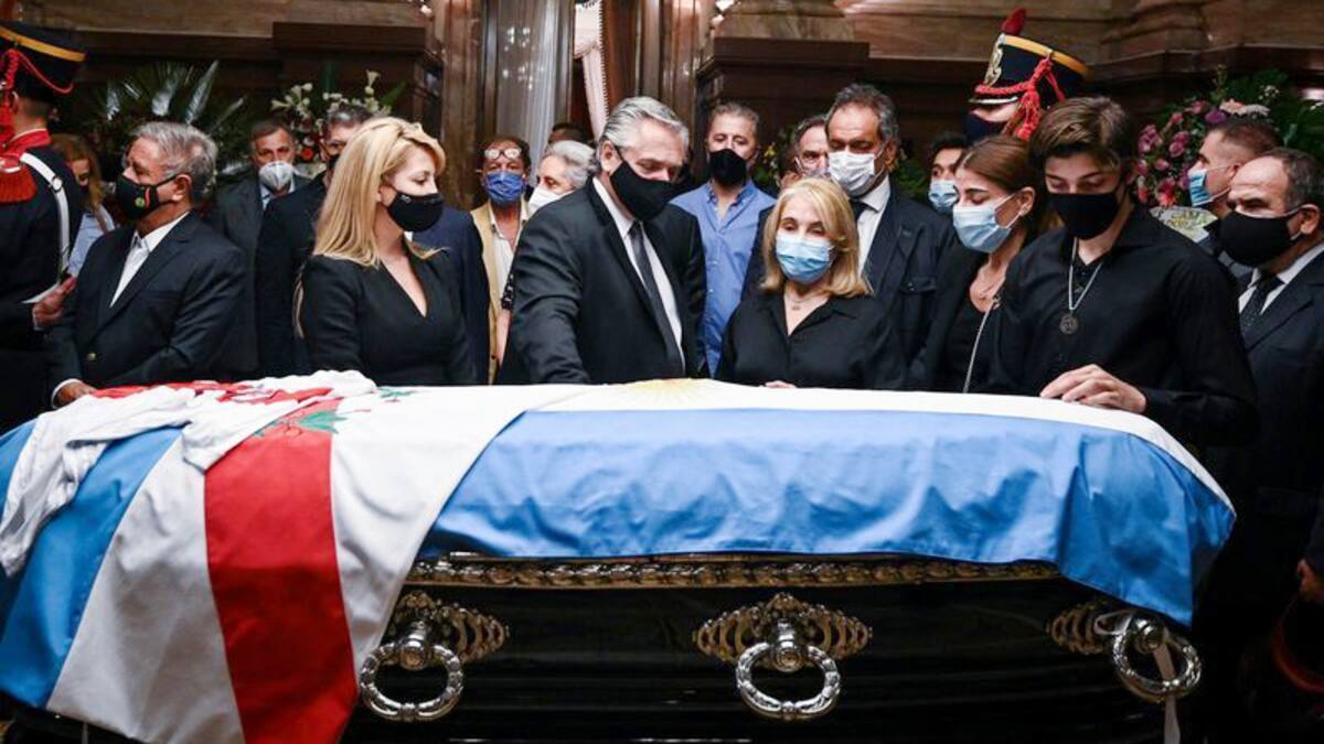 Poco más de una hora más tarde, el actual mandatario, Alberto Fernández, que decretó tres días de duelo nacional, se acercó unos minutos a la capilla ardiente junto con la primera dama, Fabiola Yáñez.