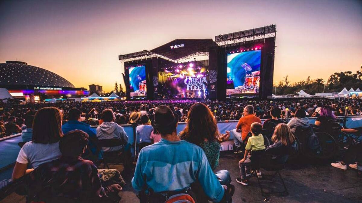 Los paneles alimentan con energía renovable la música, luces y la pantalla del escenario, de 27 metros de ancho por 12 de alto, que recibirá a 20 artistas durante los tres días que durará el festival que, como todos los años anteriores, se desarrolla en el parque O’Higgins, un enorme pulmón verde ubicado en el centro de Santiago.