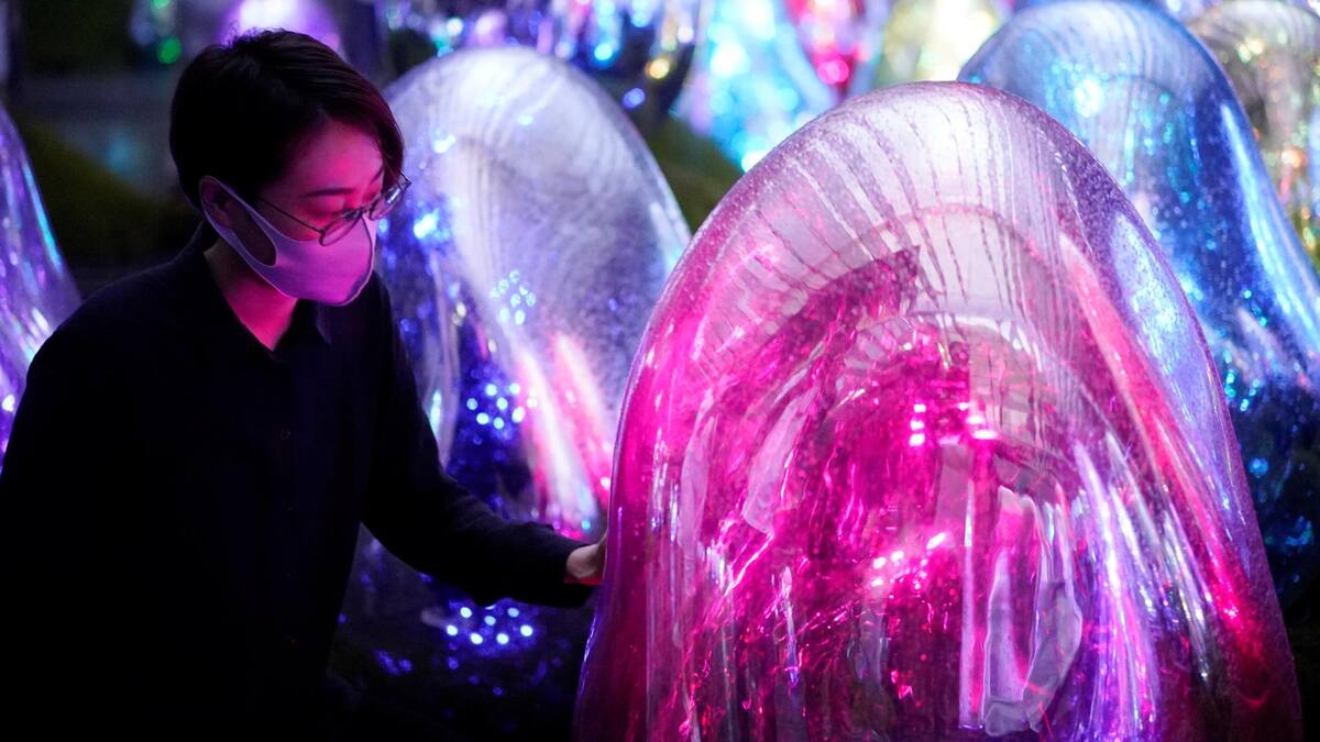 El grupo creativo japonés teamLab presentó su nueva “zona ajardinada” con un jardín de flores flotante tridimensional y ovoides en un jardín de musgo.