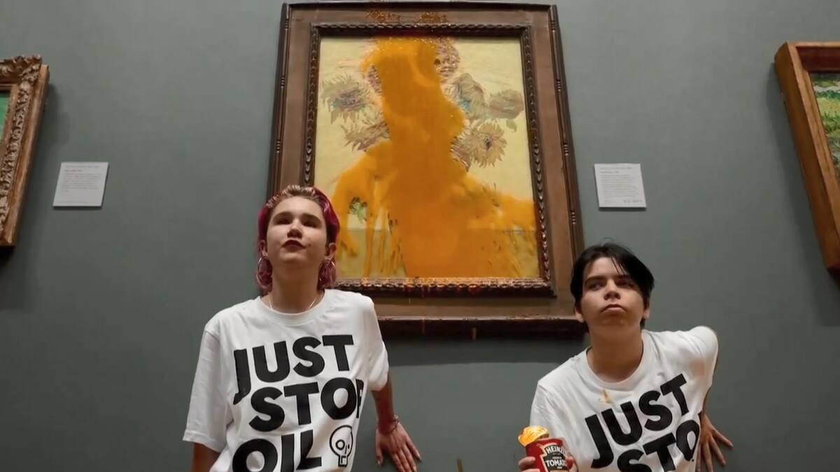 El ataque hoy de dos activistas de la organización Just Stop Oil contra el cuadro de 'Los Girasoles', de Vincent Van Gogh, en la National Gallery de Londres, es el segundo en una semana contra una obra de especial relevancia, y uno más en la larga lista de agresiones sufridas por obras de arte emblemáticas.