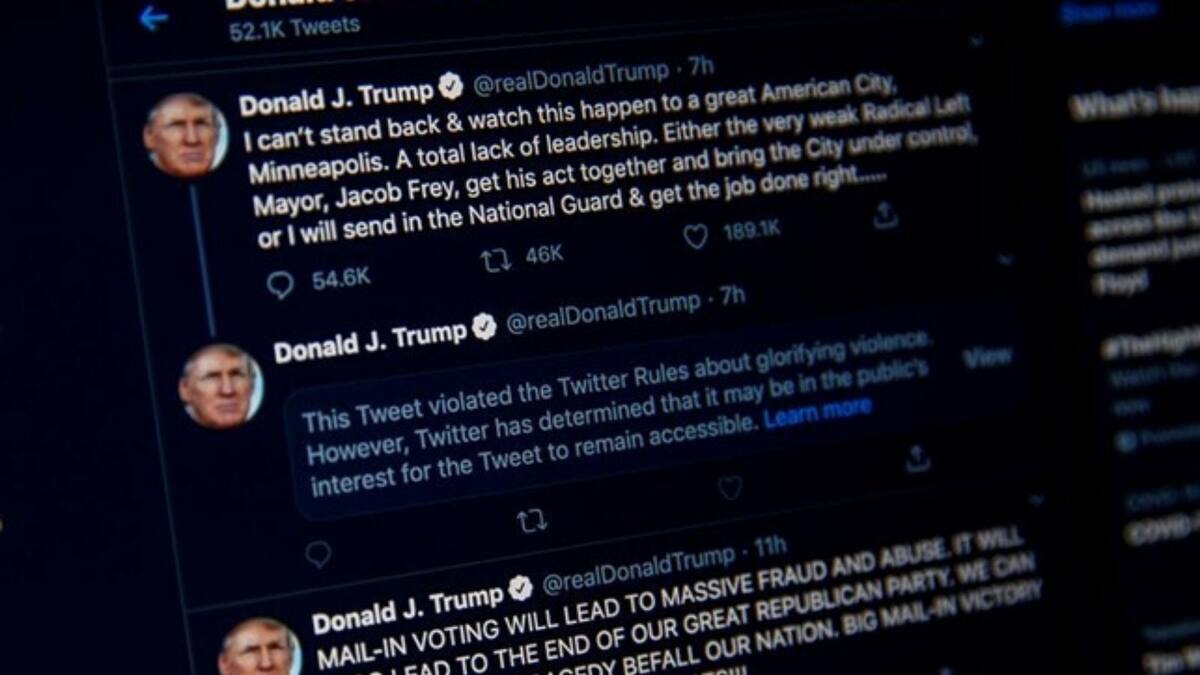El presidente de EE.UU., Donald Trump, tachó de 'matones' a los manifestantes que han salido a las calles de Mineápolis (Minesota) para protestar contra la muerte del afroamericano George Floyd a manos de agentes de la policía, en un mensaje que Twitter considera que incumple su reglas relativas a glorificar la violencia.