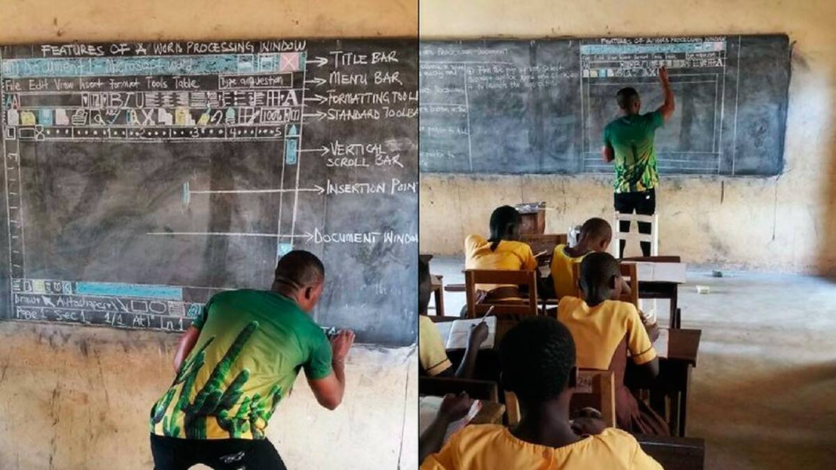 Kwadwo, graduado en artes visuales, la falta de computadores en esta región humilde no ha sido obstáculo para transmitir sus conocimientos usando el tablero y las tizas, tal como lo mostró en una publicación en Facebook, imágenes que no solo se hicieron virales sino que generaron polémica. Por un lado, elogiaron la iniciativa el profesor, pero por otro, criticaron la falta de herramientas tecnológicas en pleno Siglo XXI.