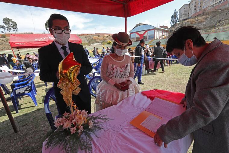 Los futuros esposos llegaron a la cancha Luis Lastra en La Paz junto a sus familiares para participar en el acto.