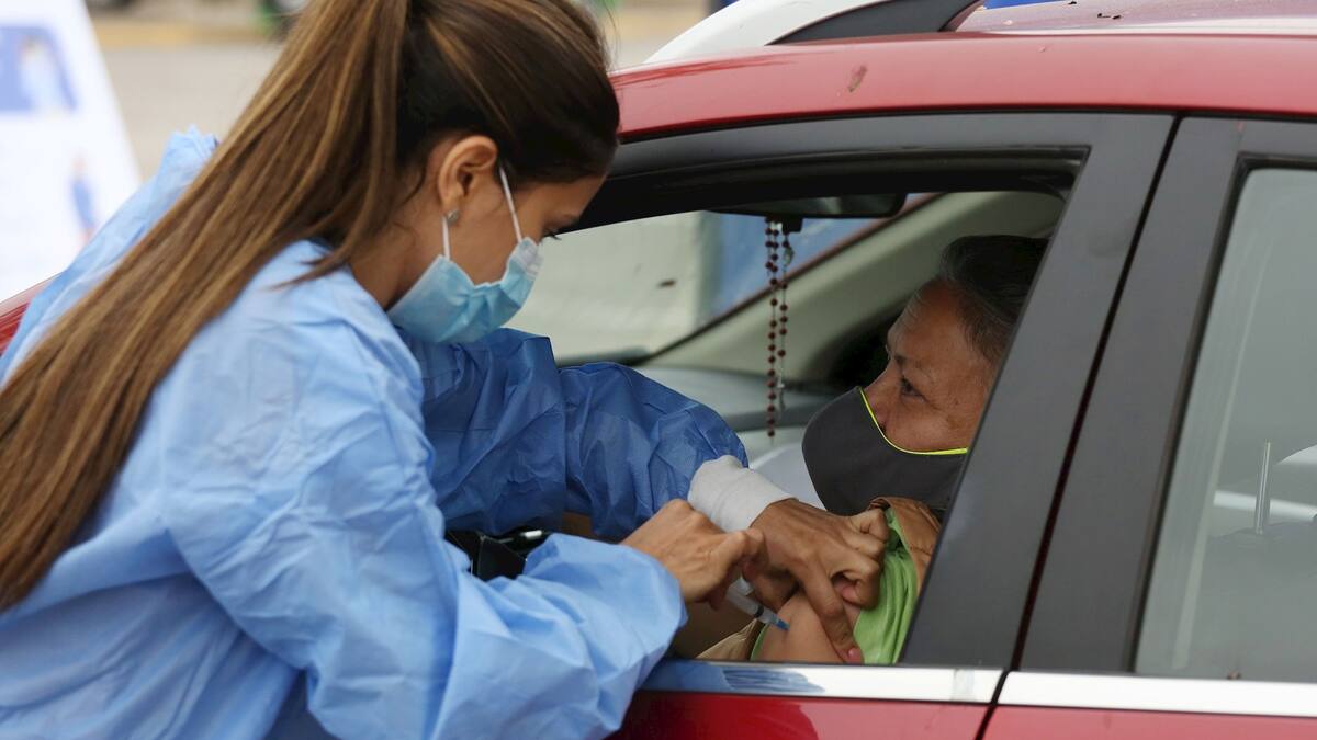 Desde el interior de su auto, sin necesidad de descender, Paula Escobar, de 45 años, recibe su primera dosis, no sin que la enfermera le pregunte sus antecedentes médicos y se asegure de que pertenece a uno de los grupos objetivo del calendario de vacunación.
