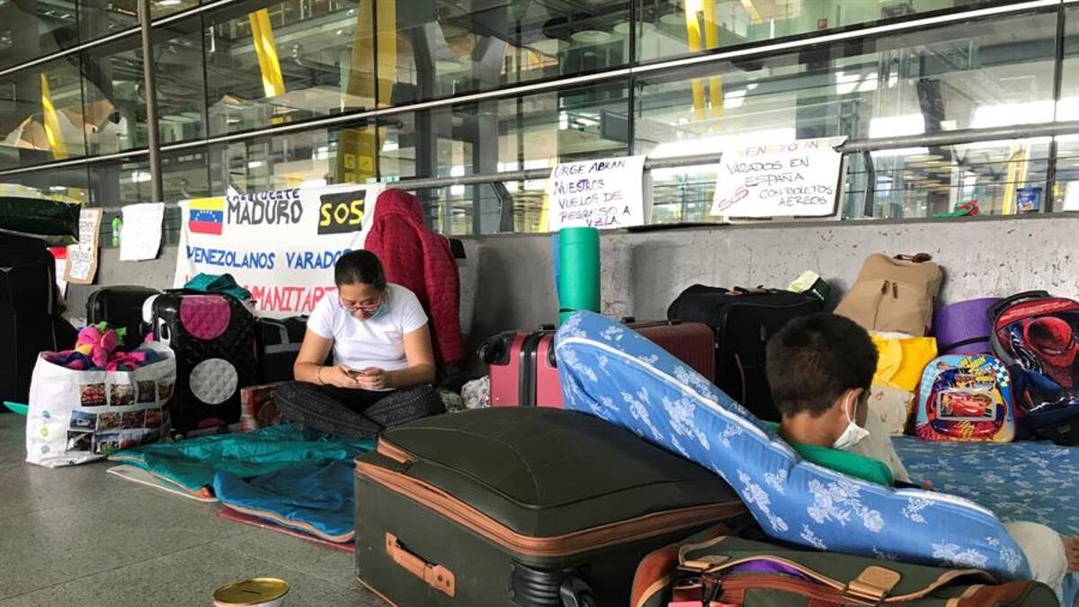 Un grupo de venezolanos varados en España durante casi cuatro meses a causa de la pandemia y del cierre del espacio aéreo volverán mañana martes a su país en un vuelo humanitario, después de más de 20 noches durmiendo en el suelo de la parte exterior de la Terminal 4 del aeropuerto de Madrid.