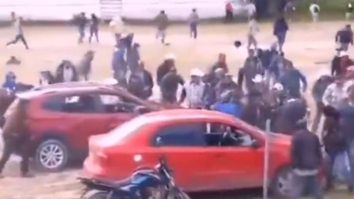 En redes sociales circularon videos que muestran momentos previos al enfrentamiento, donde decenas de pobladores se encuentran en un campo deportivo y se observa cómo se enfrentan verbalmente con los presuntos delincuentes quienes se encuentran armados.