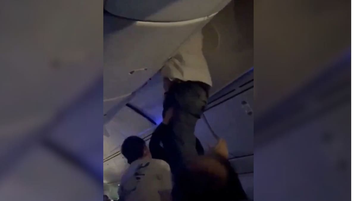 En uno de los videos que se difundió después del hecho se observa que uno de los pasajeros quedó atrapado encima del portaequipaje debido a las fuertes turbulencias.