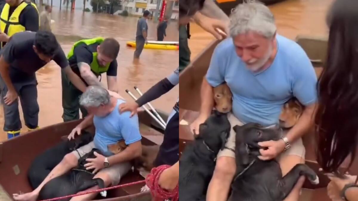 Según las autoridades de Brasil, el hombre fue identificado como Miguel, quien navegó junto a los rescatistas por las calles de la ciudad de Porto Alegre en búsqueda de sus “cuatro hijos caninos”, a quien el hombre consideraba parte de su familia.
