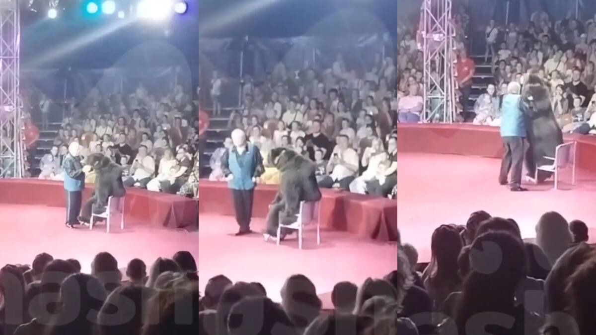 En un video que se hizo viral, quedó grabado el momento cuando una osa atacó a su entrenador en medio de un show.