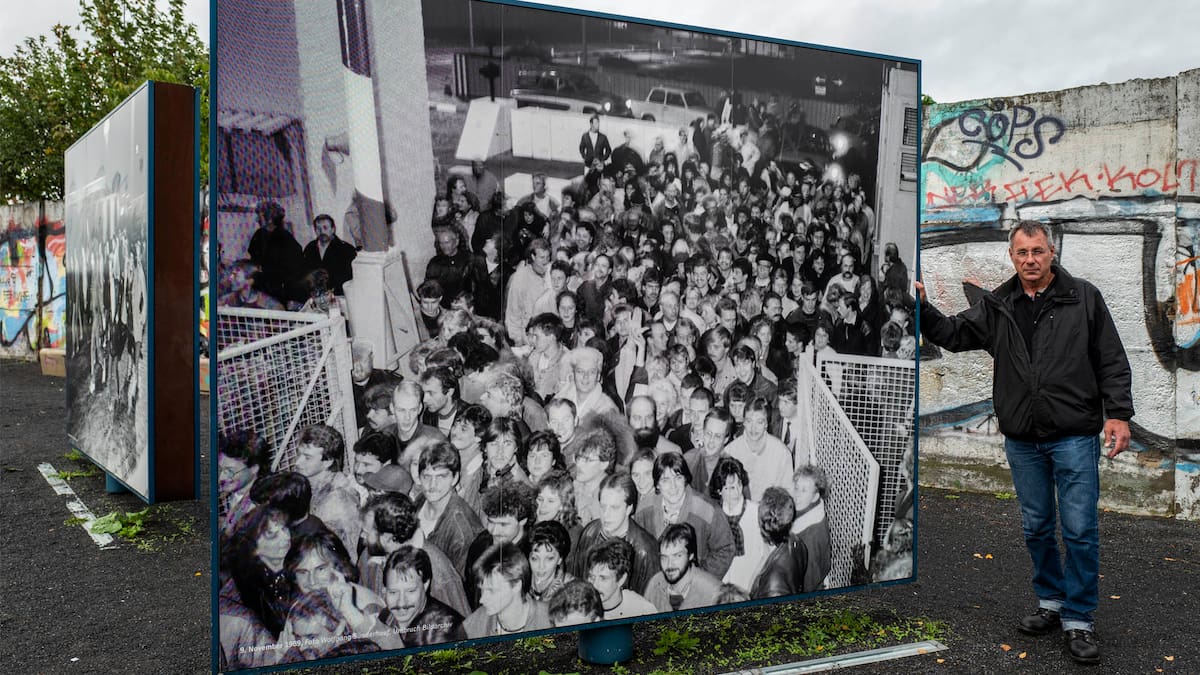 'Había una marea humana' que avanzaba hacia el puesto fronterizo de Bornholmer Strasse y que gritaba: '¿Oíste la noticia?', dice este hombre fornido de cabellos canosos, de pie en el mismo lugar en el que se encontraba treinta años atrás.