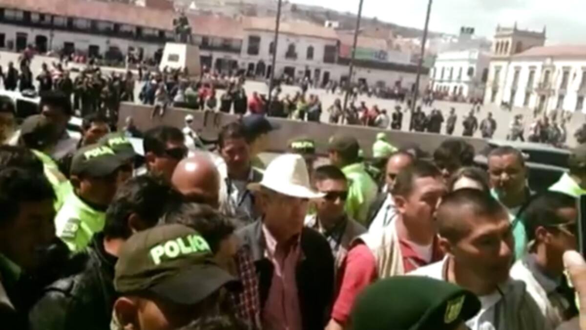 Uribe estaba en Tunja para presentar seis propuestas 'para rescatar al sector agropecuario' de su nuevo movimiento político, el Centro Democrático, con el que concurre como cabeza de lista al Senado a las elecciones parlamentarias del próximo 9 de marzo.