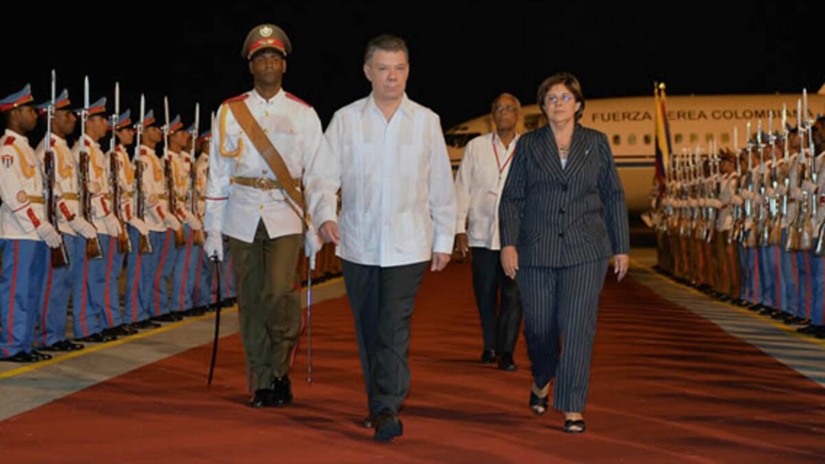 El presidente Juan Manuel Santos agradeció al Gobierno de Cuba su apoyo al proceso de paz colombiano. Así lo dijo el Mandatario al llegar este martes a La Habana para participar en la II Cumbre de la Celac.