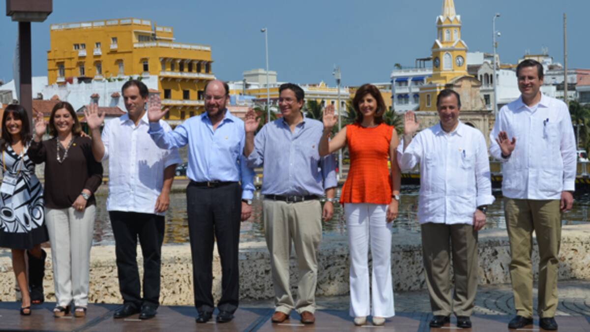 La canciller y el Mincomercio de Colombia con sus homólogos aliados se reúnen a esta hora a puerta cerrada en el Centro de Convenciones, del barrio histórico de Getsemaní, para definir el documento final que firmarán los presidentes de las naciones de la Alianza, en la reunión de mañana lunes.