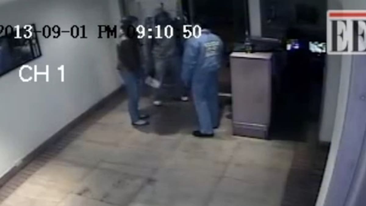 En el clip se aprecia cómo Cifuentes entra, según registro de la cinta, siendo las 9:10:49 p.m. al edificio donde vivía en compañía de una mujer, y ambos son recibidos por el celador.