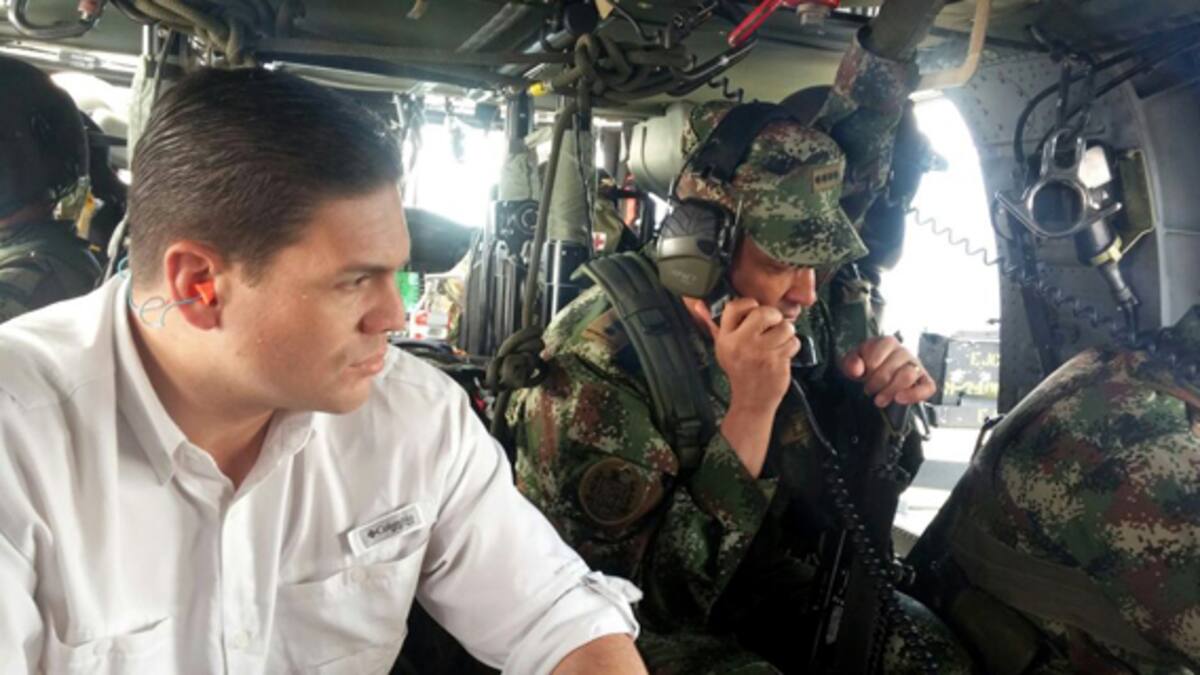 El ministro de Defensa, Juan Carlos Pinzón, en compañía de la cúpula militar, sobrevoló en la mañana de este martes el caserío de Las Mercedes, donde fueron secuestrados el general Rubén Darío Alzate, la abogada Gloria Urrego y el cabo Jorge Rodríguez, y otras áreas del Chocó donde se desarrollan las operaciones de las Fuerzas Armadas.