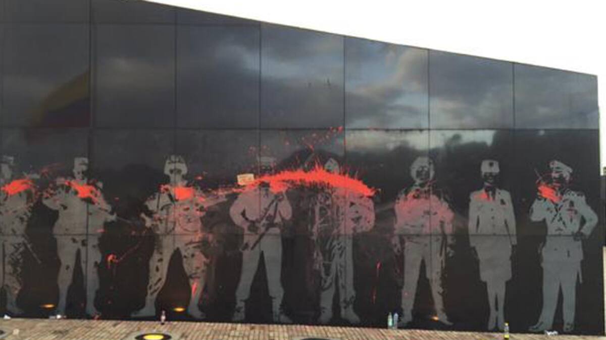 Las Fuerzas Militares de Colombia rechazaron este lunes el ataque del que fue objeto el monumento de los Héroes Caídos en Acción, en Bogotá. El monumento resultó menoscabado con pintura de color roja y el piso de los alrededores también resultó averiado durante la marcha que realizaron hoy docentes y directivos de Fecode en Bogotá.