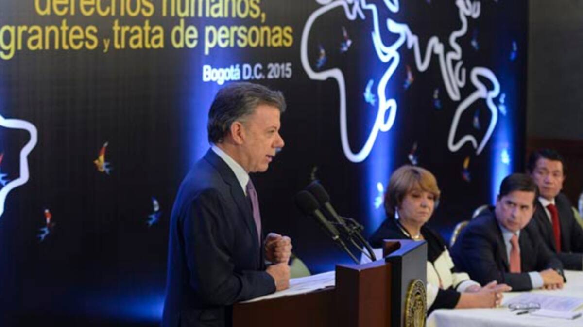 'Hacer la paz es bien difícil y encuentra uno enemigos de todo tipo. Quiero aprovechar esta oportunidad para denunciar a uno de esos enemigos terroristas de extrema derecha que están amenazando a los defensores de derechos humanos, a los reclamantes de tierras', dijo Santos en la instalación de la Cumbre Iberoamericana sobre Derechos Humanos, Migrantes y Trata de Personas.