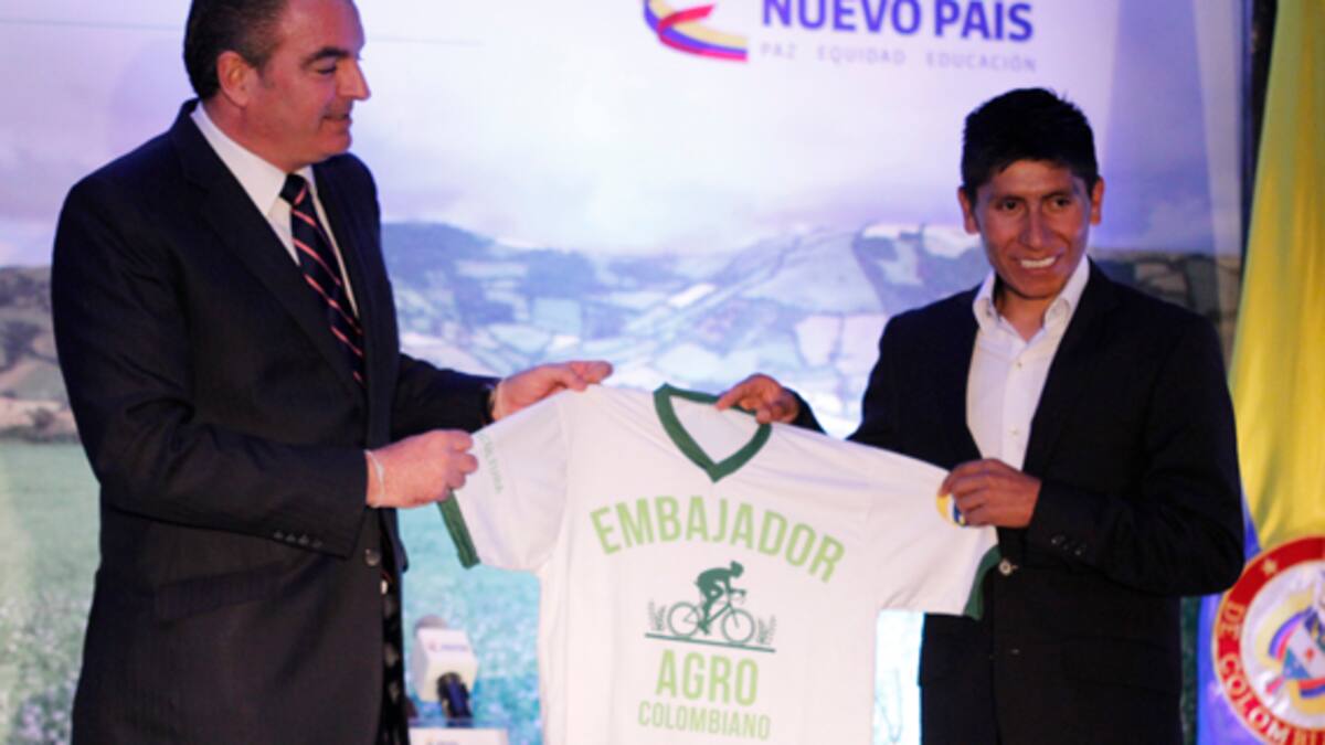 El Gobierno de Colombia nombró hoy al ciclista Nairo Quintana, integrante del equipo Movistar, 'Embajador de buena voluntad del agro colombiano', con la misión de representar al campesinado y los productos nacionales en el país y en el exterior.