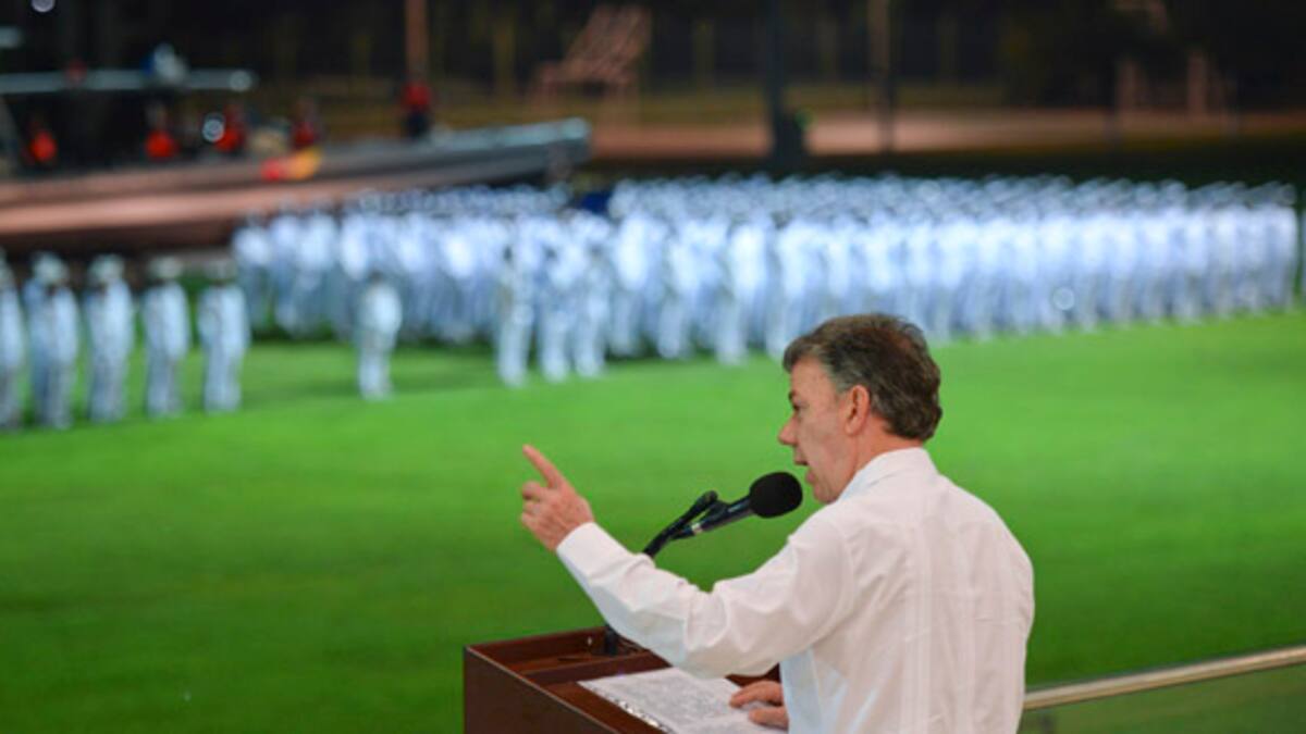 Santos advirtió, durante la ceremonia militar, que los bombardeos sólo se harán por orden de él.