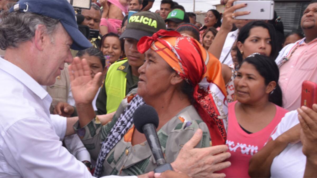 Anuncios. Por este motivo y después de una reunión con las autoridades y las líderes Ricy Deluque y Yudi Peralta, voceras de la comunidad, Santos anunció que en el pueblo se construirán 100 viviendas gratis, un complejo deportivo y una casa lúdica.