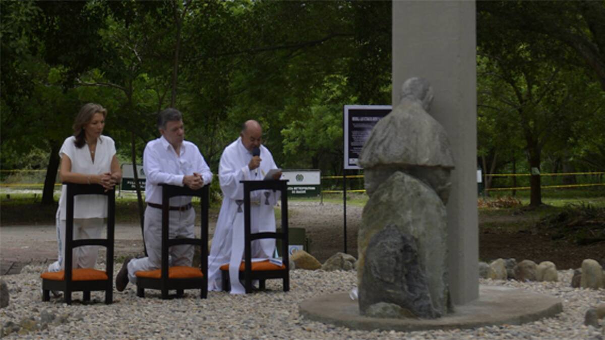 Bajo la sombra de la gran cruz blanca que rememora la tragedia, Santos sembró un árbol, 'insignia de la esperanza' para un lugar en el que, destacó, la muerte no consiguió vencer.