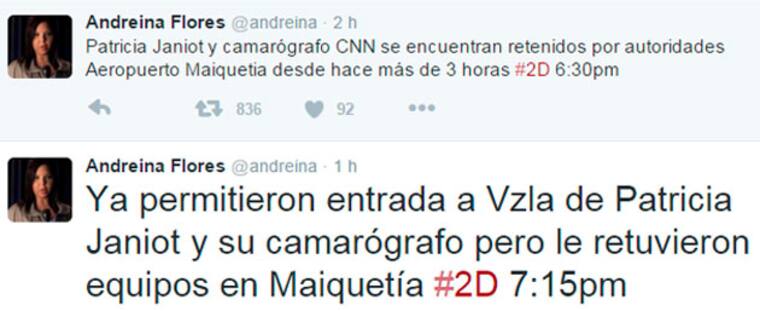 Ocho cajas del equipo técnico de CNN 'retenidas' en el aeropuerto. 'Ya otras altas autoridades de Venezuela están al tanto y parecen dispuestos a colaborar para superar el 'malentendido'', sostuvo Janiot.