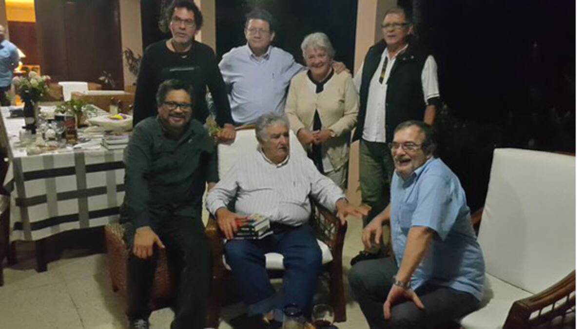 'Los uruguayos apoyan el proceso de paz', publicó 'Iván Márquez', alias de Luciano Marín Arango, en su cuenta oficial en Twitter, junto a una foto en la que se puede ver a Mujica, a su esposa, la senadora Lucía Topolansky; y al máximo jefe de esa insurgencia, Rodrigo Londoño Echeverri, alias Timochenko.