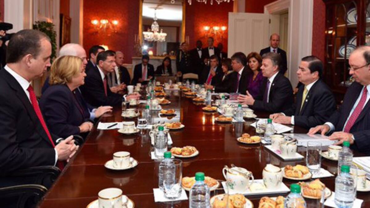 El marco de la agenda que cumple en Estados Unidos por los 15 años de Plan Colombia, el presidente Juan Manuel Santos se reunió con congresistas republicanos para conversas de varios temas.