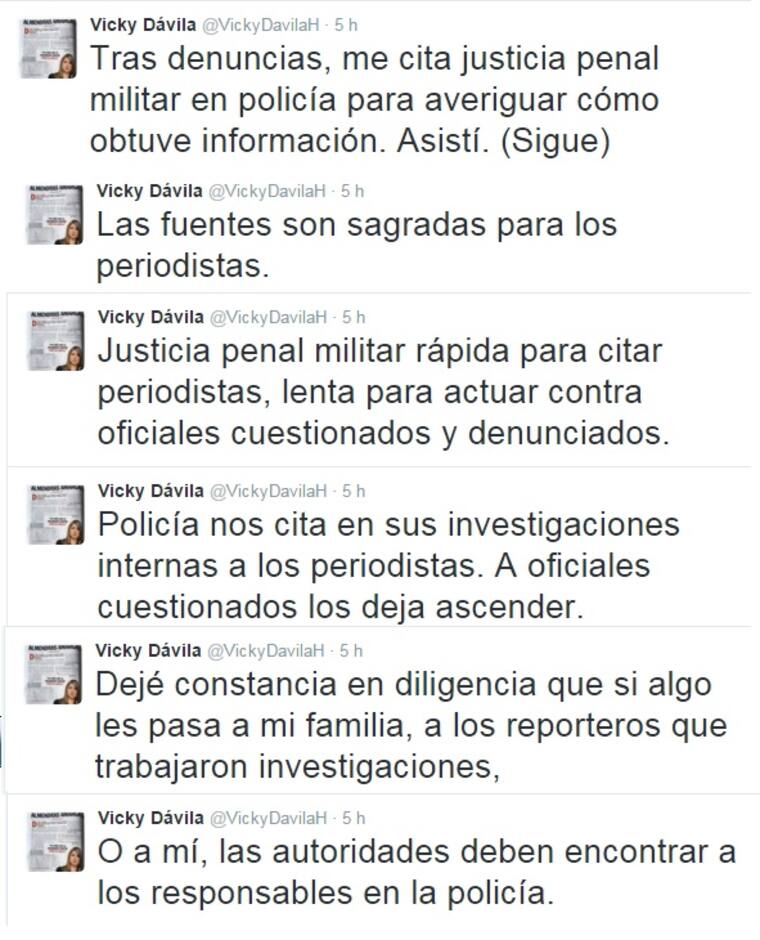 Dávila denunció que 'si algo les pasa a mi familia, a los reporteros que trabajaron investigaciones, o a mí, las autoridades deben encontrar a los responsables en la policía'.