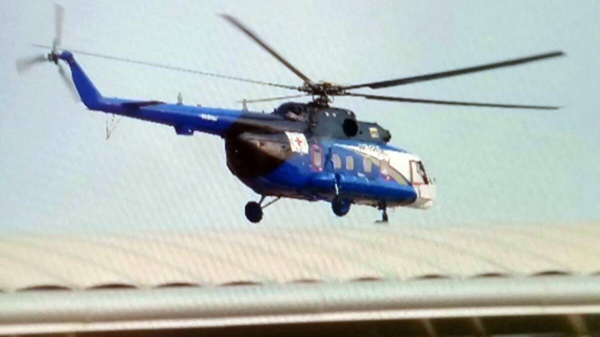 En el aeropuerto de Valledupar, además del helicóptero, estaban ubicados al lado de la pista vehículos con el emblema de la Cruz Roja.