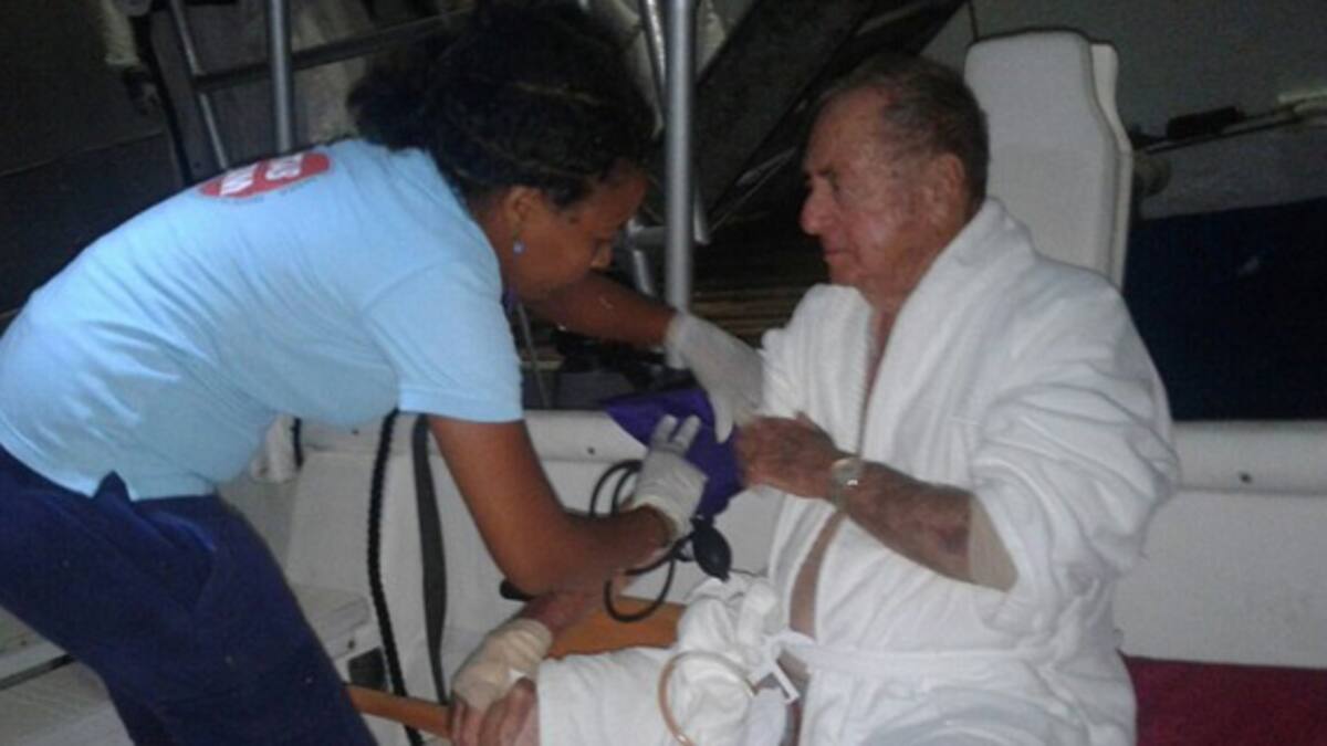 Una lancha medicalizada del Centro Regulador de Urgencias y Emergencias navegó hasta el sitio donde se encontraba el crucero para trasladar al hombre junto con su esposa hasta un muelle en Castillo Grande, indicó la Armada en un comunicado.