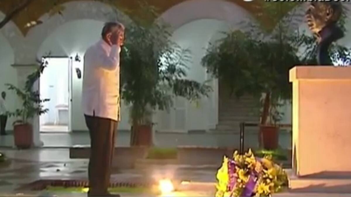 Frente al mismo lugar donde reposan las cenizas del nobel, con la mirada hacia el piso,también le rindió un minuto de silencio en su honor.