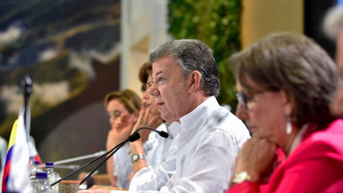 'En este preciso momento se están reuniendo nuevamente en Bogotá el expresidente Uribe y delegados de su partido con los negociadores del Gobierno, hice venir específicamente desde La Habana al jefe negociador Humberto de la Calle y al comisionado de paz, Sergio Jaramillo a esta reunión y le di instrucciones de que no se pararan de la mesa hasta no evacuar todos los puntos', sostuvo el mandatario colombiano.