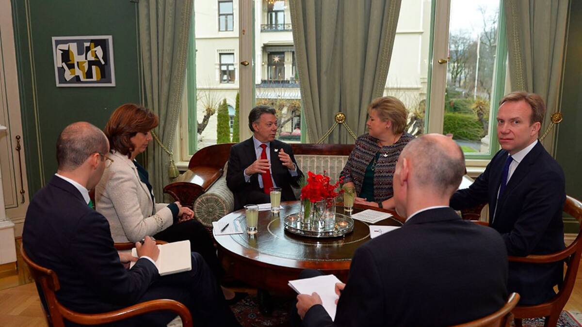 Santos, que cumple su tercera jornada en Oslo, se entrevistará luego con la primera ministra, Erna Solberg, con quien compartirá un almuerzo antes de celebrar una rueda de prensa.