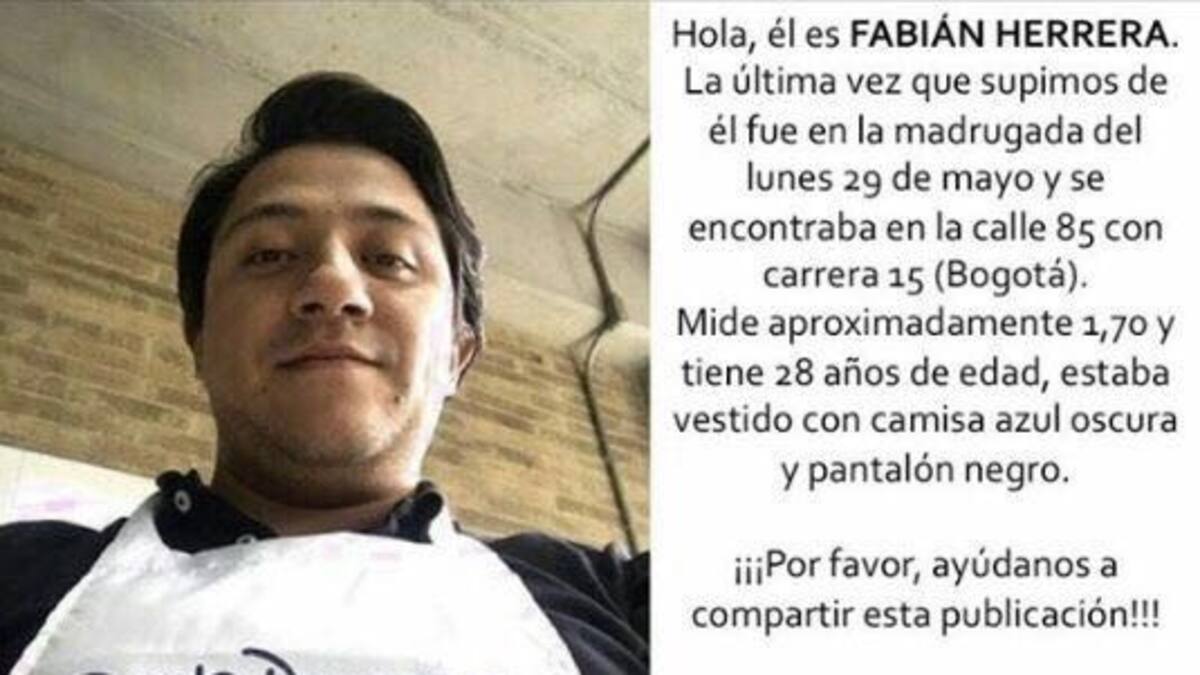 El Instituto Nacional de Medicina Legal confirmó que en la madrugada de este sábado llegó a las instalaciones de la entidad el cuerpo sin vida de Carlos Fabián Herrera Merchán, el médico de 28 años que había desaparecido hace una semana al norte de Bogotá.
