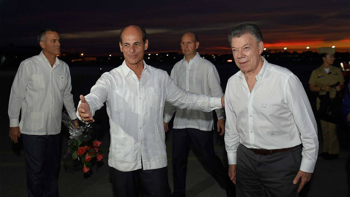 El presidente Santos arribó fue recibido por el vicecanciller cubano Rogelio Sierra en el Aeropuerto Internacional José Martí, de La Habana.