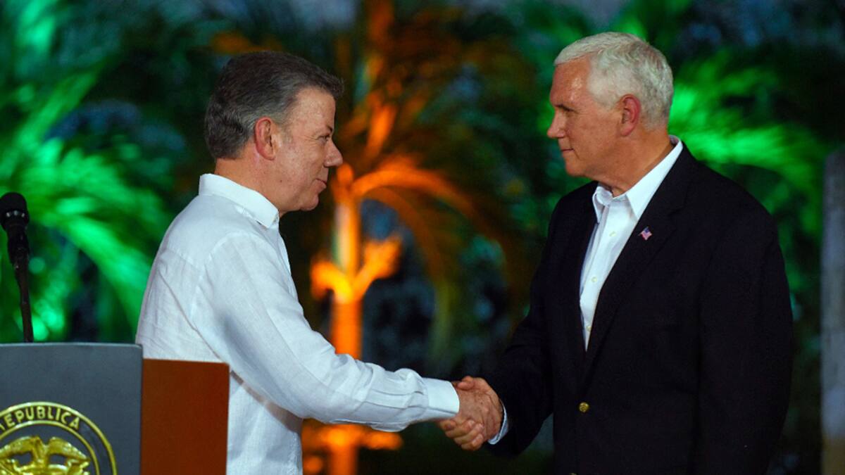 Este domingo, desde la Casa de Huéspedes Ilustres en Cartagena, Juan Manuel Santos y Mike Pence, vicepresidente de los Estados Unidos, se reunieron cerca de hora y media en donde tocaron varios temas.