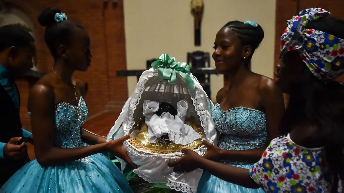 La figura oscura, con su ajuar, es protagonista de los festejos, que se celebran cada tercer sábado de febrero, con casi dos meses de retraso con respecto al 24 de diciembre por una vergonzosa herencia de la esclavitud.