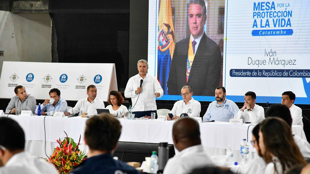 El presidente Iván Duque intervino ayer en la clausura de la quinta sesión de la Mesa por la Protección a la Vida en Ocaña, y dijo que el país no puede caer en cualquier afrenta hacia defensores de derechos humanos ni de funcionarios oficiales.