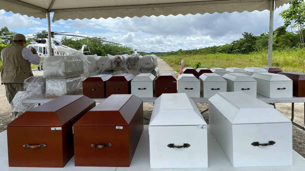El pasado 11 de noviembre comenzó el proceso de la llegada de los cuerpos a bordo de un helicóptero Mil Mi-17, de fabricación rusa, proporcionado por la ONU.