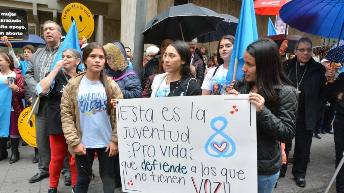 En la protesta hubo carteles, cánticos, fotos de bebés y fetos y rosarios católicos de mujeres y hombres denominados provida, que rechazaban la propuesta de fallo del ponente.