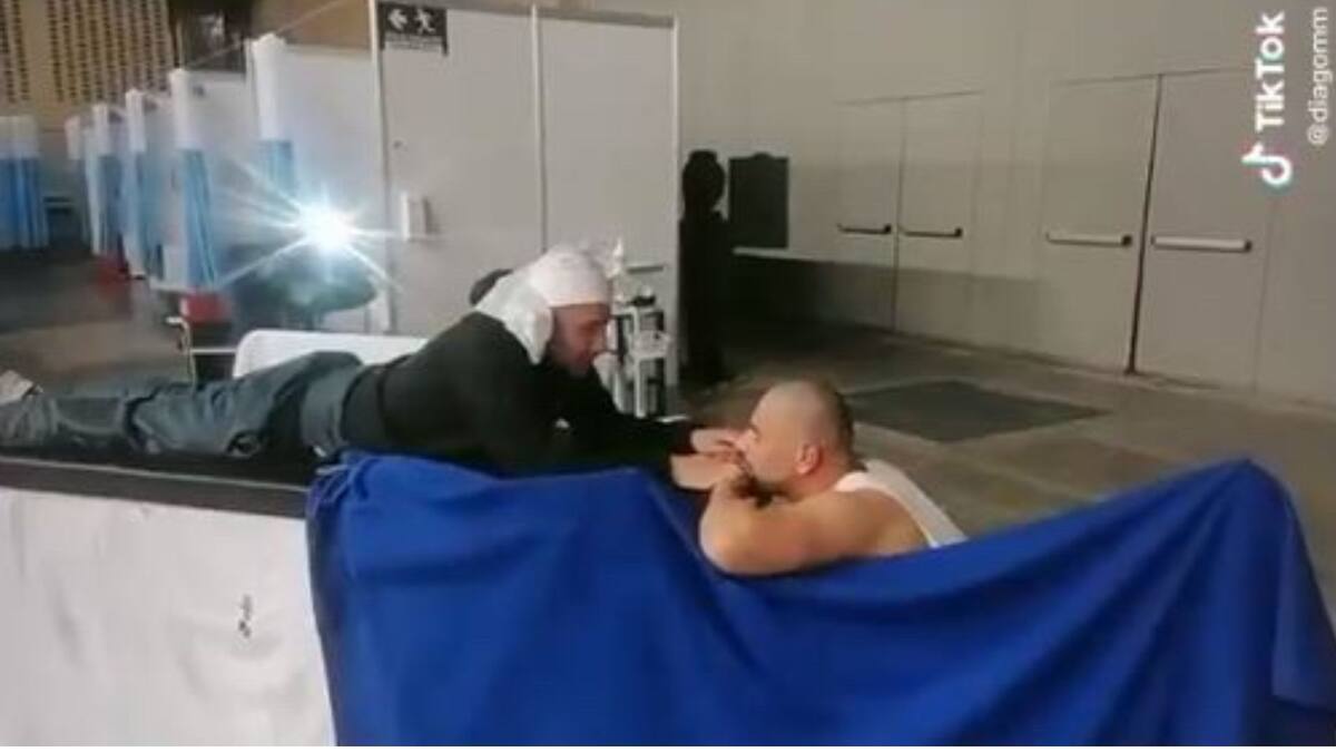 En las imágenes se puede ver a los trabajadores utilizando elementos públicos destinados a la atención de pacientes afectados por el coronavirus, como los son camillas, cobijas, batas y sillas de rueda. 'Con esfuerzo, fueron implementados con el fin de prevenir y mitigar los efectos del covid -19 en Bogotá' señaló la entidad.