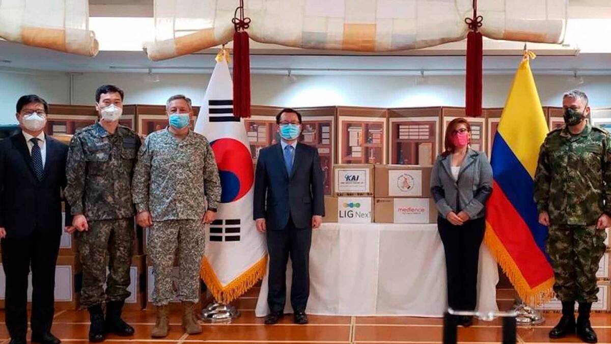 Para la donación, que se realiza en el marco del aniversario 70 del inicio de la Guerra de Corea que se celebra este año, el Gobierno del país asiático realizó una excepción en la prohibición que impuso a la exportación de tapabocas por la alta demanda doméstica como muestra de respeto a los veteranos colombianos.