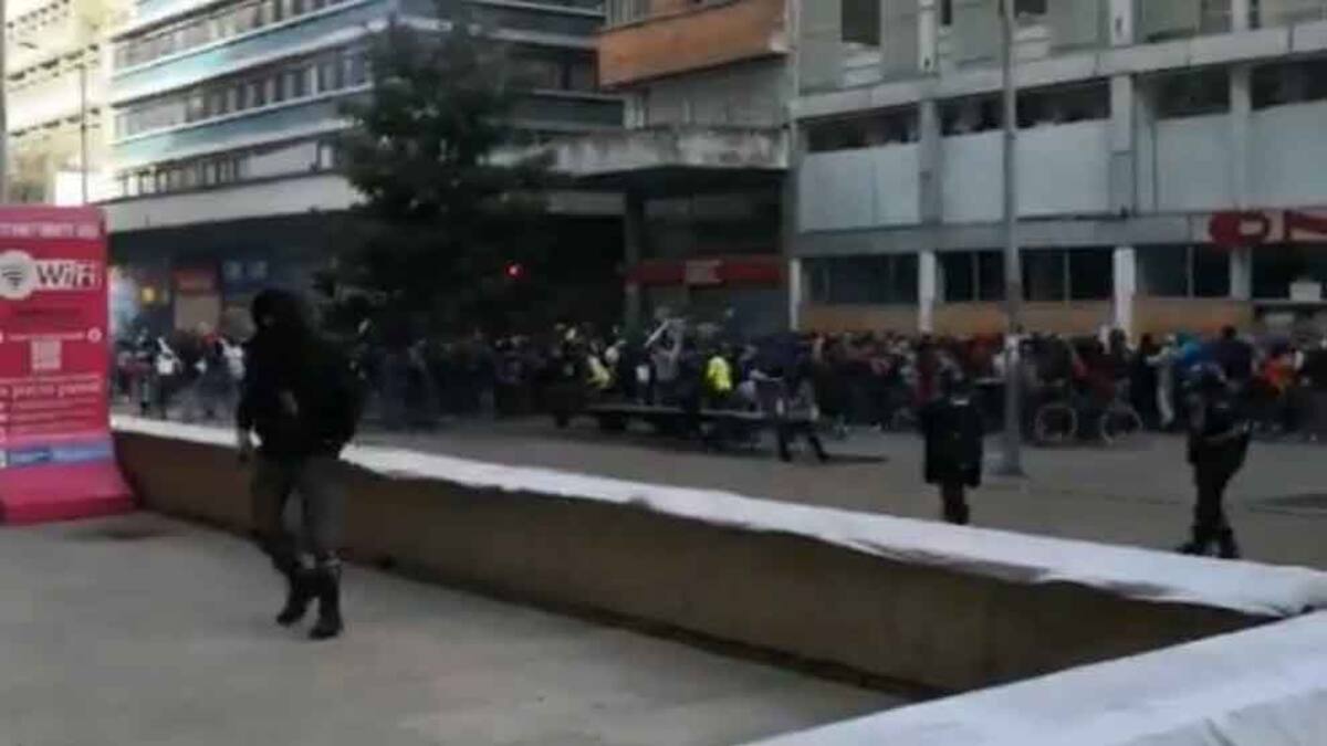 El jefe de la cartera ministerial añadió que también vándalos ingresaron violentamente a una entidad financiera en el centro de Bogotá. 'Lo cual obliga la intervención del Esmad de la Policía Nacional para restablecer el orden'.